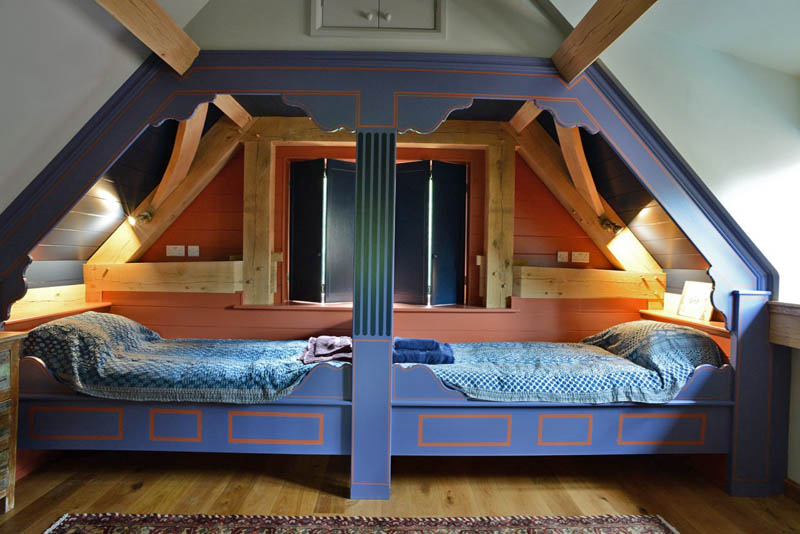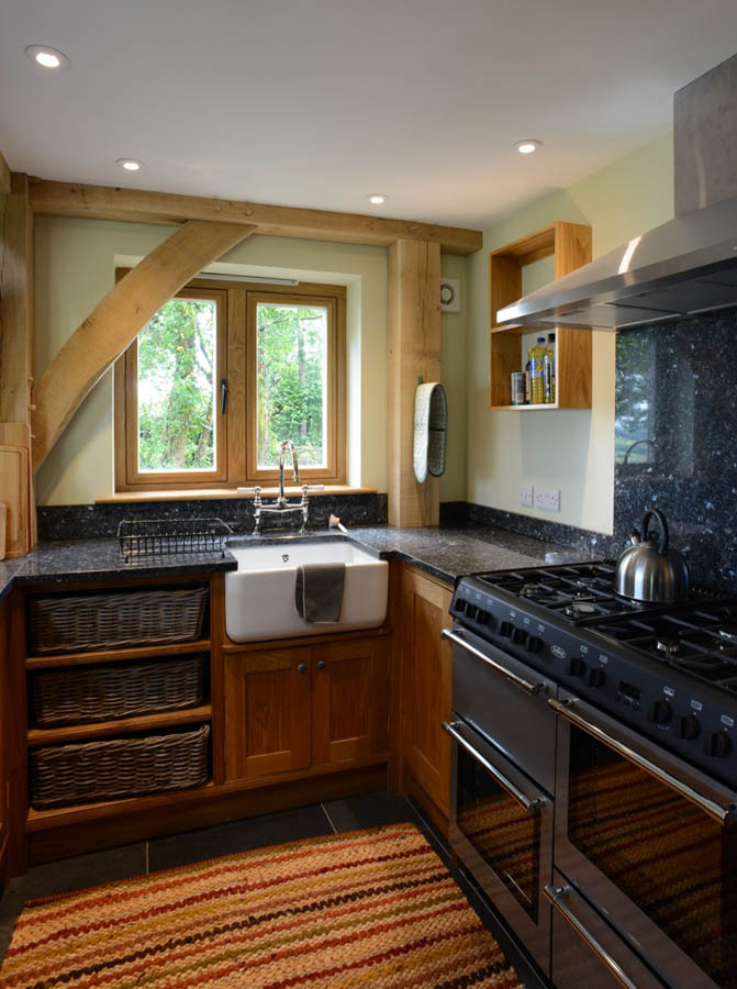 The house is a newly built oak-frame building and has been constructed using traditional methods, craftsmanship and care, using local products wherever possible. Once you step inside, its depth of character is apparent, with oak beams, oriental rugs and a wood-burning stove being just a few features that help create a welcoming environment. The cottage provides self-catering holiday accommodation for up to 6-8 people and our guests are treated to light, airy bedrooms, delightful views of the open countryside, and the modern warmth and cosiness of an under-floor heated, off grid, eco-house.